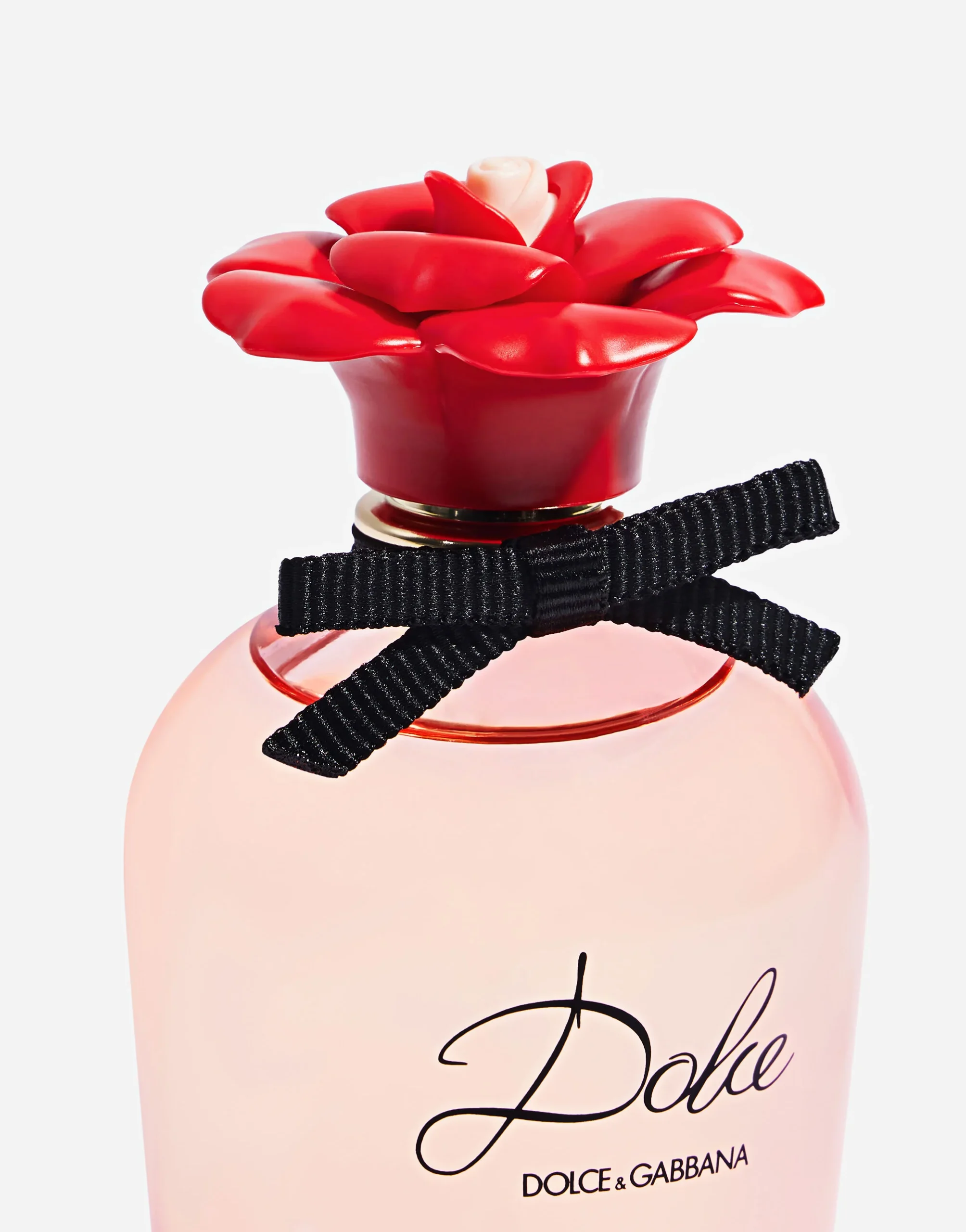 Spilgts noformējums: pudele ir spilgti caurspīdīga sarkanā krāsā ar raksturīgo Dolce ziedu vāciņu sarkanā krāsā un melnu grogrēna lenti, kas atspoguļo smaržas kaislību un prieku.