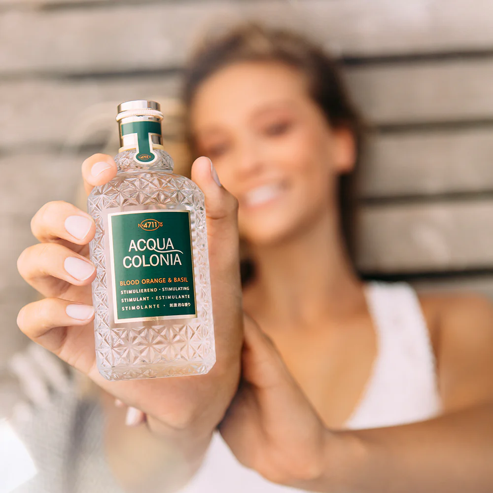 4711 Acqua Colonia Blood Orange & Basil ir enerģizējošs kolonjūdens, kas radīts, lai stimulētu maņas un uzlabotu garastāvokli. Šis aromāts, kas ir daļa no slavenās Acqua Colonia kolekcijas, kuras uzmanības centrā ir divu kontrastējošu galveno sastāvdaļu harmonija, ir meistarklase smaržu aromterapijā. Tas ir ideāls aromāts tiem, kas meklē dabisku, caurspīdīgu un pacilājošu pieredzi, kas liek justies kā pastaigā pa saules apmirdzētu Vidusjūras koku birzi.